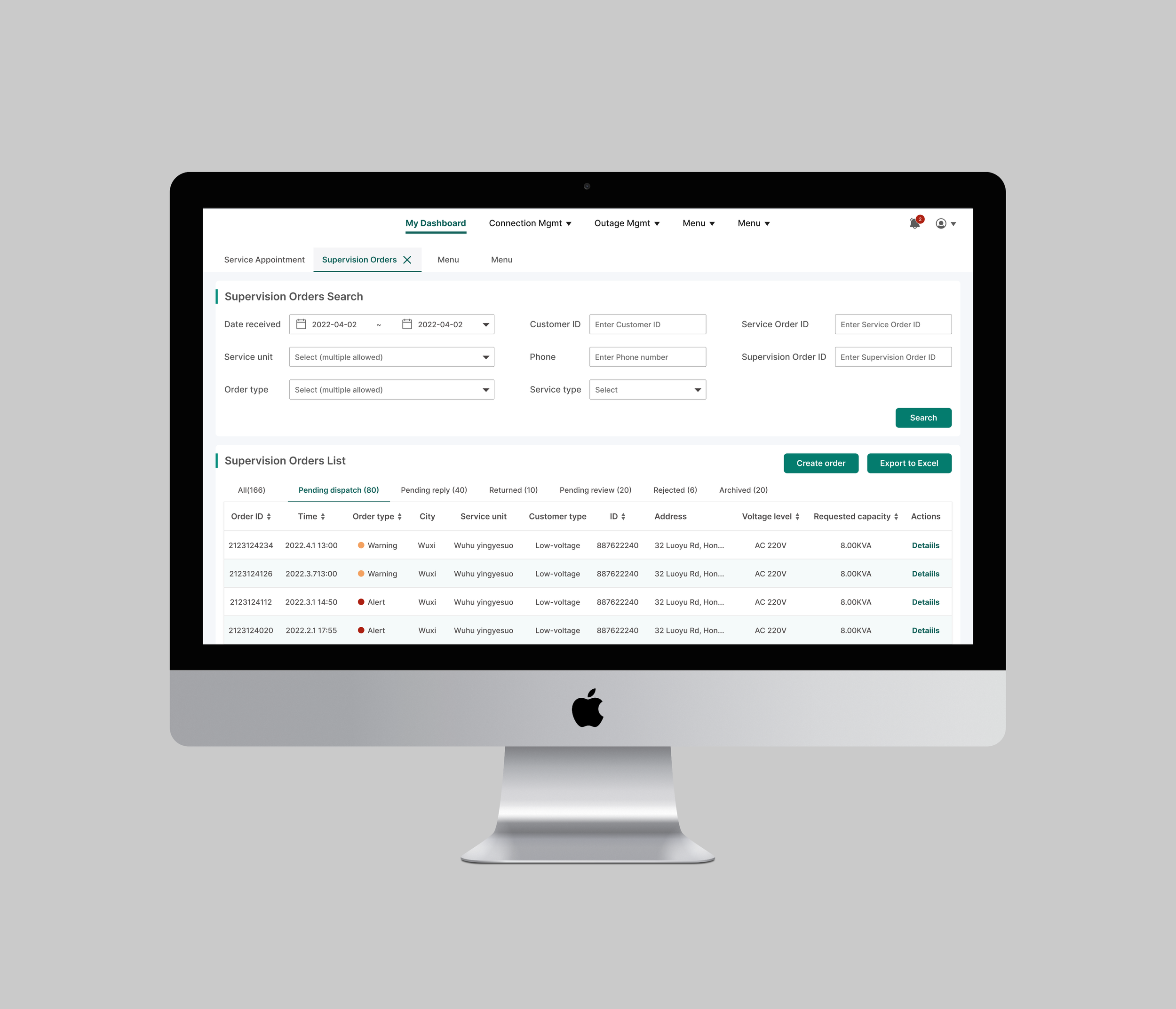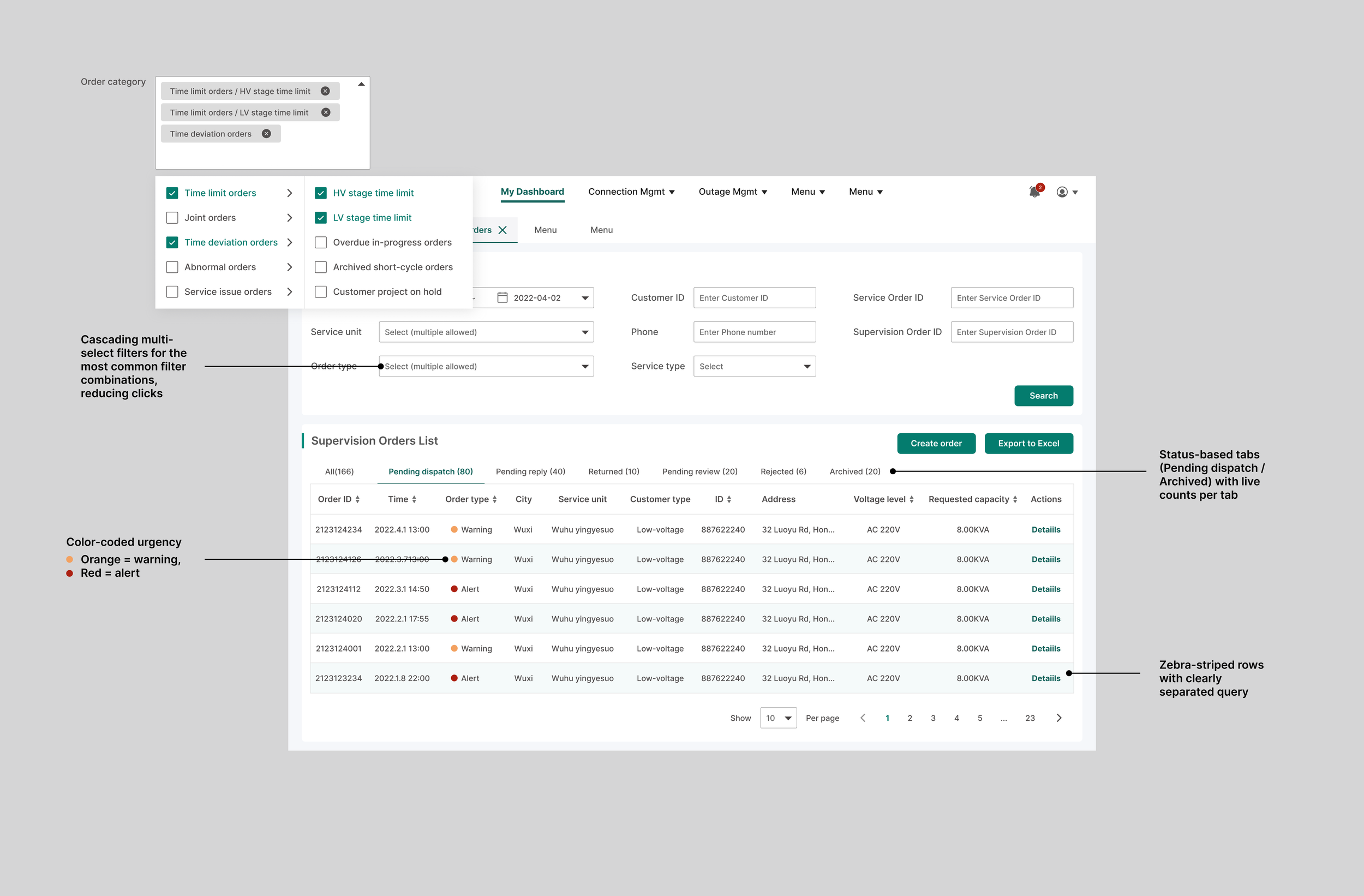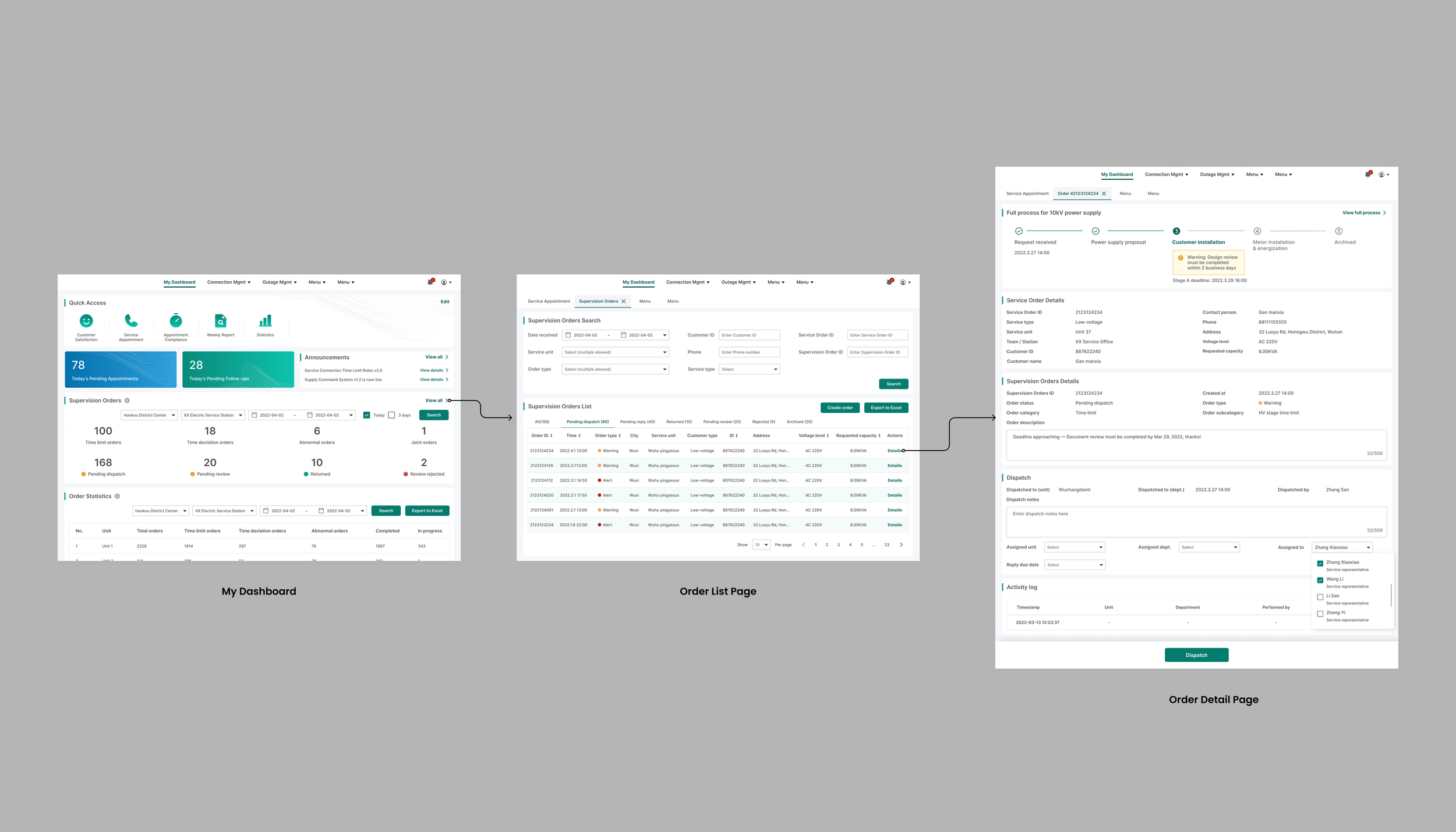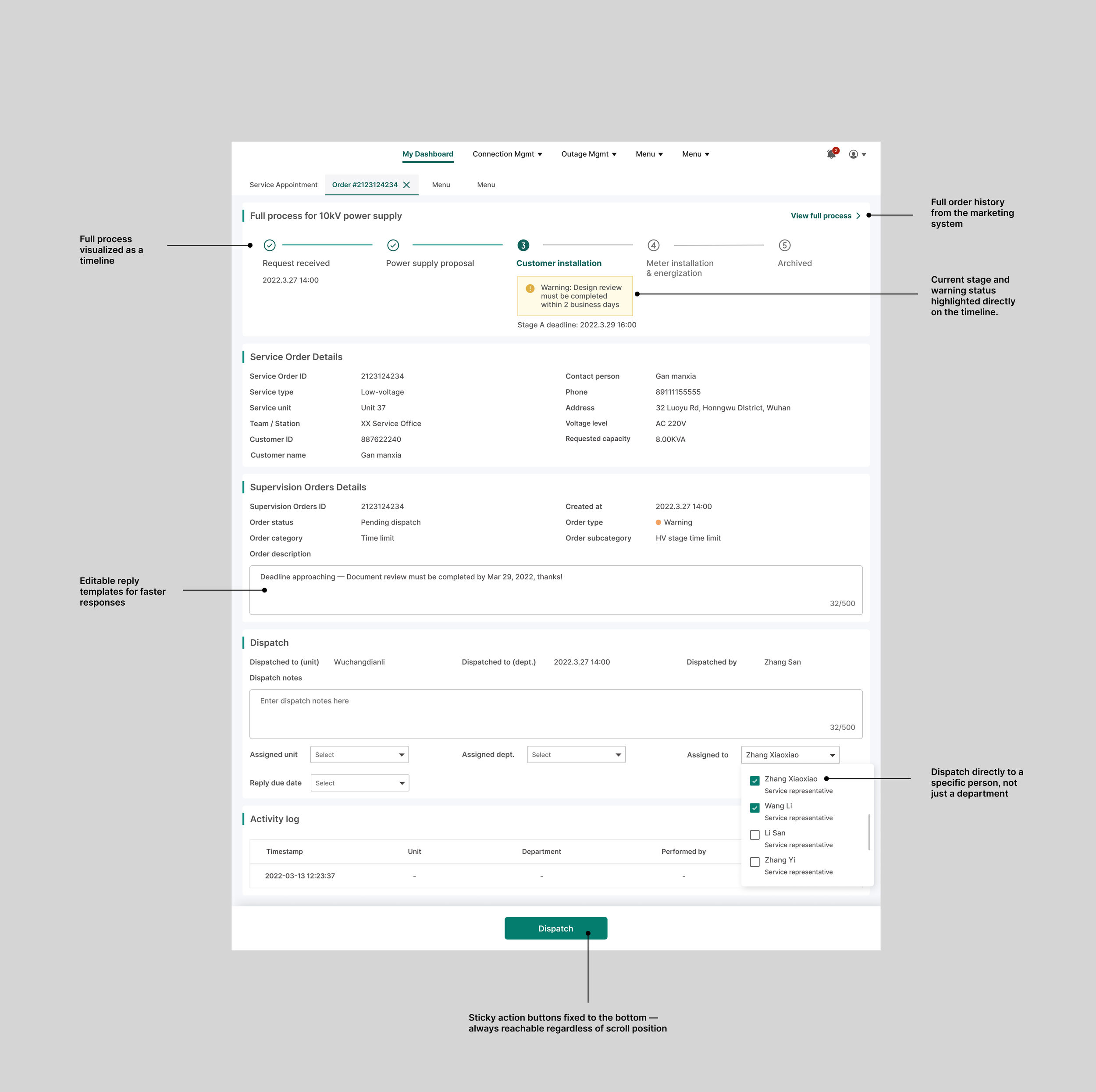 GridWatch is an internal command platform that helps power supply dispatchers monitor time-sensitive connection requests, escalate to the right person before deadlines are missed, and track every order from a single workspace.